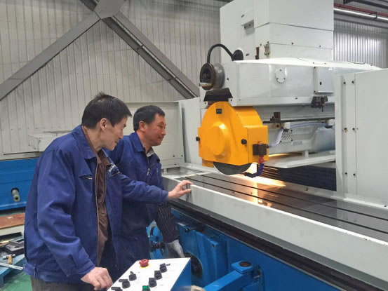 操作工和檢驗(yan)員正在驗收出(chū)口機床M7150*16/HZ