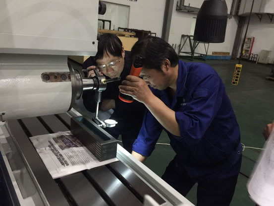 圖(tu)爲專家(jiā)在杭機(ji)股份現(xian)場抽查(chá)M7132H卧軸矩(jǔ)台平面(miàn)磨床💃🏻的(de)幾♊何精(jing)🔞度